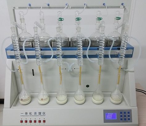 一體化智能蒸餾儀是根據實驗室蒸餾預處理操作規(guī)程,集恒溫加熱、蒸餾終點自動控制、冷卻水循環(huán)于一體的新型智能蒸餾處理裝置。該儀器實驗了精密控溫、自動防倒吸、加熱均勻、防暴沸、智能終點控制等功能。使用方便,節(jié)能環(huán)保。經過計量認證實驗室蒸餾回收率比對驗證,結果準確可靠,回收率達95%以上。