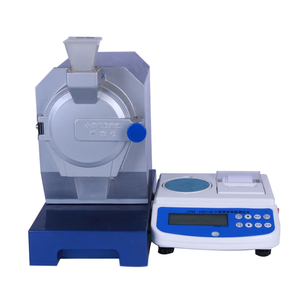 本產品是根據(jù)GB1354-2008《小麥》、GB/T21304-2007《小麥硬度測定 硬度指數(shù)法》等國家和行業(yè)標準要求研制。主要是利用軟、硬小麥具有不同的抗機械粉碎強度的原理,即:在規(guī)定的條件下利用硬麥不易成粉狀、軟麥易成粉狀的特性粉碎樣品,使留在篩網上的樣品質量與樣品總質量的比例算出小麥的硬度。