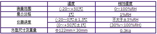 該儀表為圓盒結(jié)構(gòu)。體積小,重量輕,堅(jiān)固耐用,便于攜帶和安裝。適用于氣象觀測和倉庫、醫(yī)院、科研、農(nóng)業(yè)、工礦企業(yè)、實(shí)驗(yàn)室、空調(diào)機(jī)房等各種行業(yè)需要測定環(huán)境溫度和相對濕度的場所